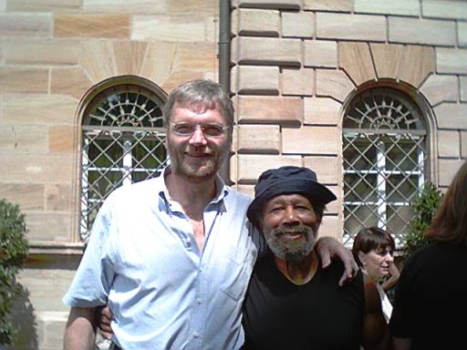 ![]() Die Fürther Kunst-Begegnungen sind immer auch eine Möglichkeit der Begegnung der Künstler miteinander. Hier Horst Delkus mit Ronald E. Johnson.