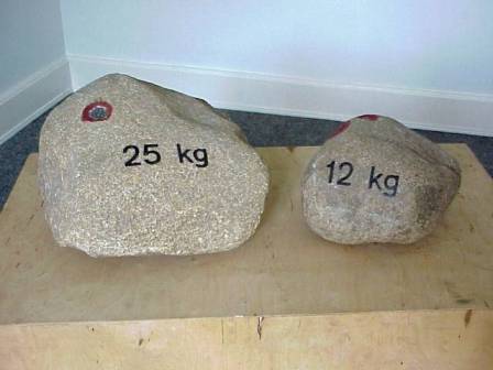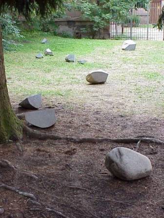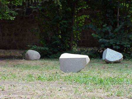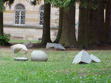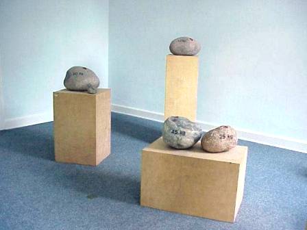 geb. 1975 in Marl, lebt seit 1989 in Fürth, wo er 2001 mit dem Kulturförderpreis ausgezeichnet wurde. Er absolvierte eine Ausbildung zum Steinmetz und Steinbildhauer, seit 2001 studiert er an der Akademie der Bildenden Künste Nürnberg bei Professor Ottmar Hörl. Wir zeigen von Peter Stutzmann eine Installation im Schlosshof und eine in der Galerie. Die Installation im Schlosshof beschäftigt sich mit der "Domestizierung von Steinen". Sie hinterfragt, was aus "wilden Steinen" wird, wenn der Mensch sie "domestiziert", sie für seine Zwecke vereinnahmt und bearbeitet. Die Installation in der Schloss-Galerie zeigt Steine nicht als Material für Kunst, sondern ihre Nutzbarmachung für den menschlichen Alltag - als Gewichte. |