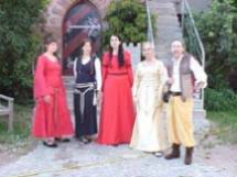 Besuch von der Uni Würzburg: "Lilim - the Children of Lilith" stürmten die Burg Abenberg und besuchten den Turmschreiber. Burg, Rosengarten und Turnieranger wurden sorgfältig inspiziert und okkupiert. Häufigen Besuchern meiner Seiten sei gesagt, dass es sich bei diesen vier wohl gewandeten Ladies um die Ägyptologinnen und Vor- und Frühgeschichtlerinnen handelt, die im November 2006 auf den Spuren von Seshmosis Binzwangen besuchten.