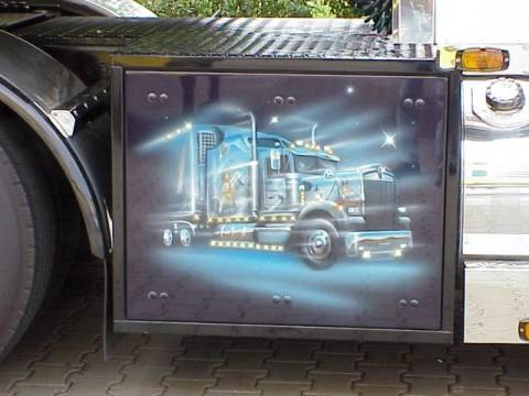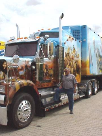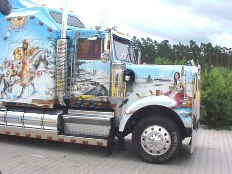 Ich habe Hans Henglein gefragt, ob er sich das alles auch in echt angeschaut hat, was da auf seinem Truck so kunstvoll abgebildet ist. Die Antwort war ebenso knapp wie leise: „Nur einiges. Ein paar Tage durchs Land. Aber das ist nicht unsere Art.“