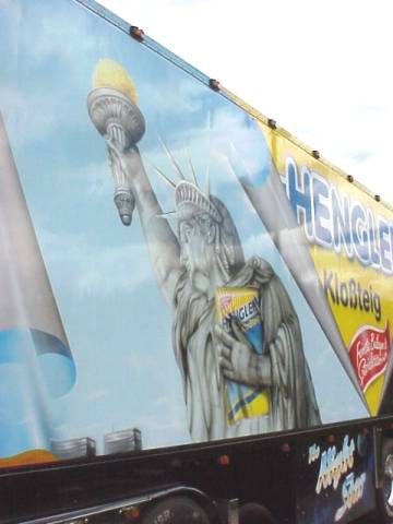 Das konnten weder die „Nouvelle Cuisine“, noch weltweit agierende Fastfood-Ketten erschüttern oder gar verändern. Und ausgerechnet in Abenberg, präziser im Ortsteil Wassermungenau, befindet sich das Zentrum des fränkischen Kloß-Universums. Der Herrscher dieses Imperiums kartoffelgeborener Köstlichkeiten ist einer, den man neudeutsch Selfmademan nennt, also einer, der es nicht durch Erbschaft oder Lottogewinn, sondern durch eigener Hände Arbeit zu etwas gebracht hat. Einer, der sich auch nicht scheut zu zeigen, dass er es geschafft hat, egal ob durch seine Villa, seine Pferde oder die Pferde unter der Haube oder das Pferd am Kühlergrill.Nun, wenn es einer aus eigener Kraft geschafft hat von Null auf Hundert oder von fast Null auf Millionen, lohnt sich immer ein genauerer Blick, was das denn für einer ist. Ein Schild am Straßenrand macht den Fremden darauf aufmerksam, dass er sich nun in „Henglein-City“ befindet. Schnell wird einem klar, dass hier einer den amerikanischen Traum seiner Jugend lebt. Und spätestens wenn man vor dem „Henglein-Truck“ der Marke Kenworth steht, dieser fahrenden All-American-Airbrush-Galerie, versinkt man entweder in seinen eigenen Vorurteilen oder fragt sich: Was steckt wirklich dahinter?